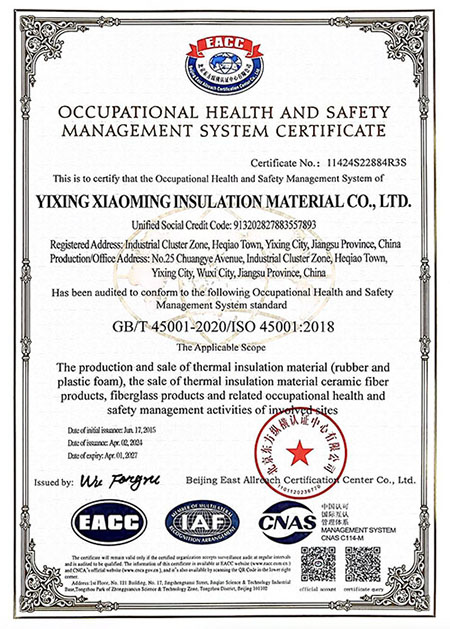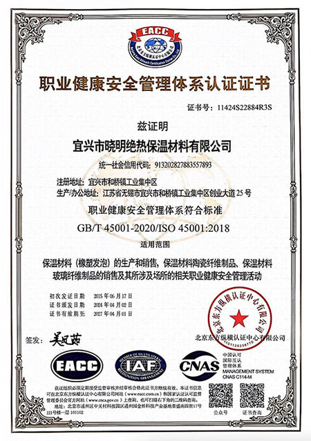 職業(yè)健康安全管理體系認(rèn)證證書(shū) 中英文